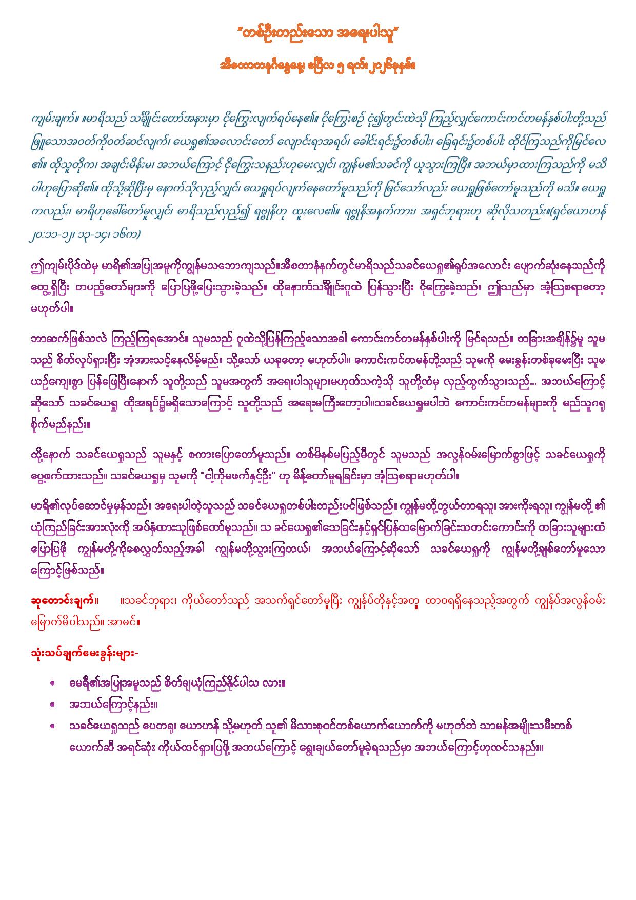 နုပျိုသက်တာအတုယူစရာကဏ္ဍ