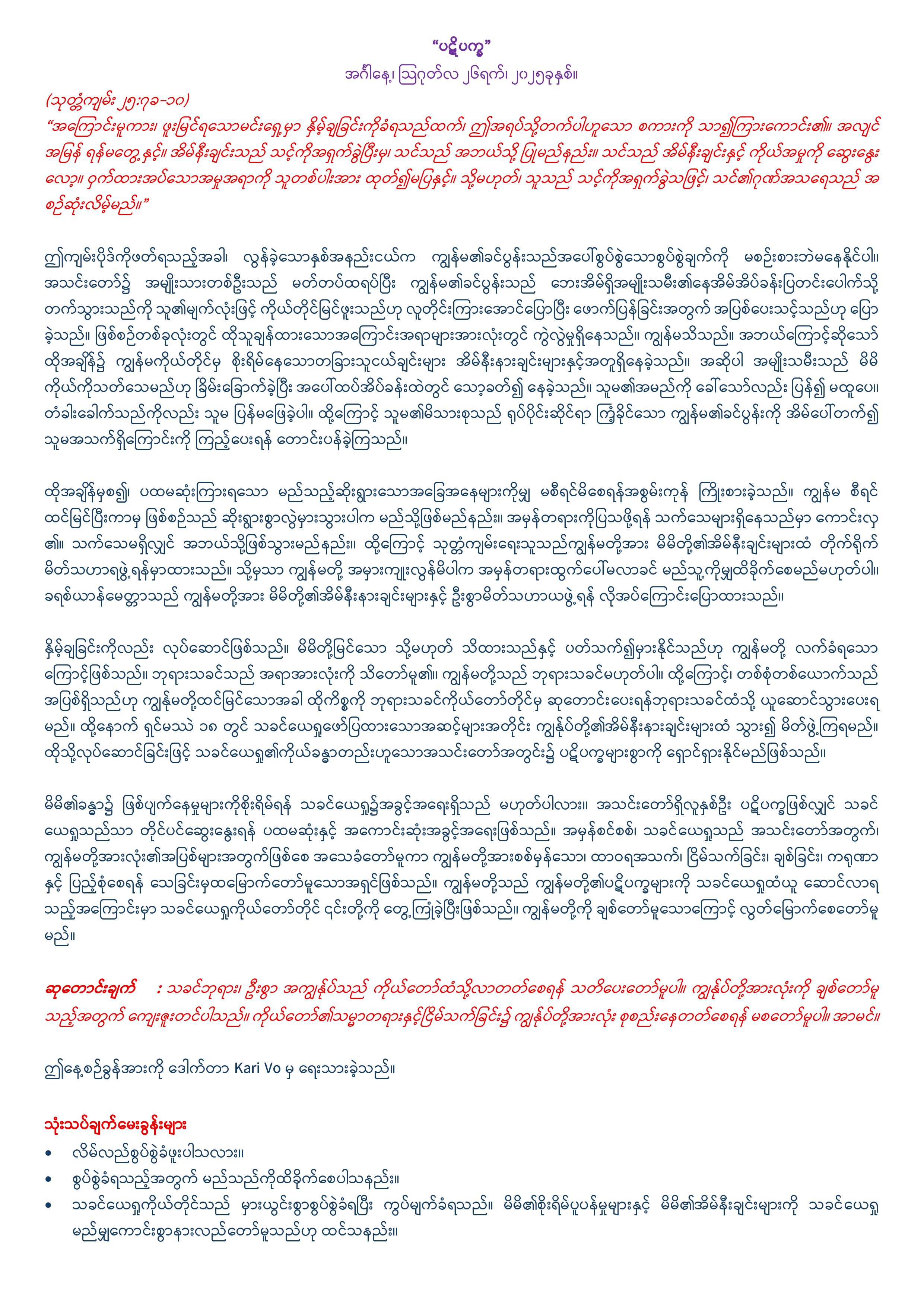 နုပျိုသက်တာအတုယူစရာကဏ္ဍ