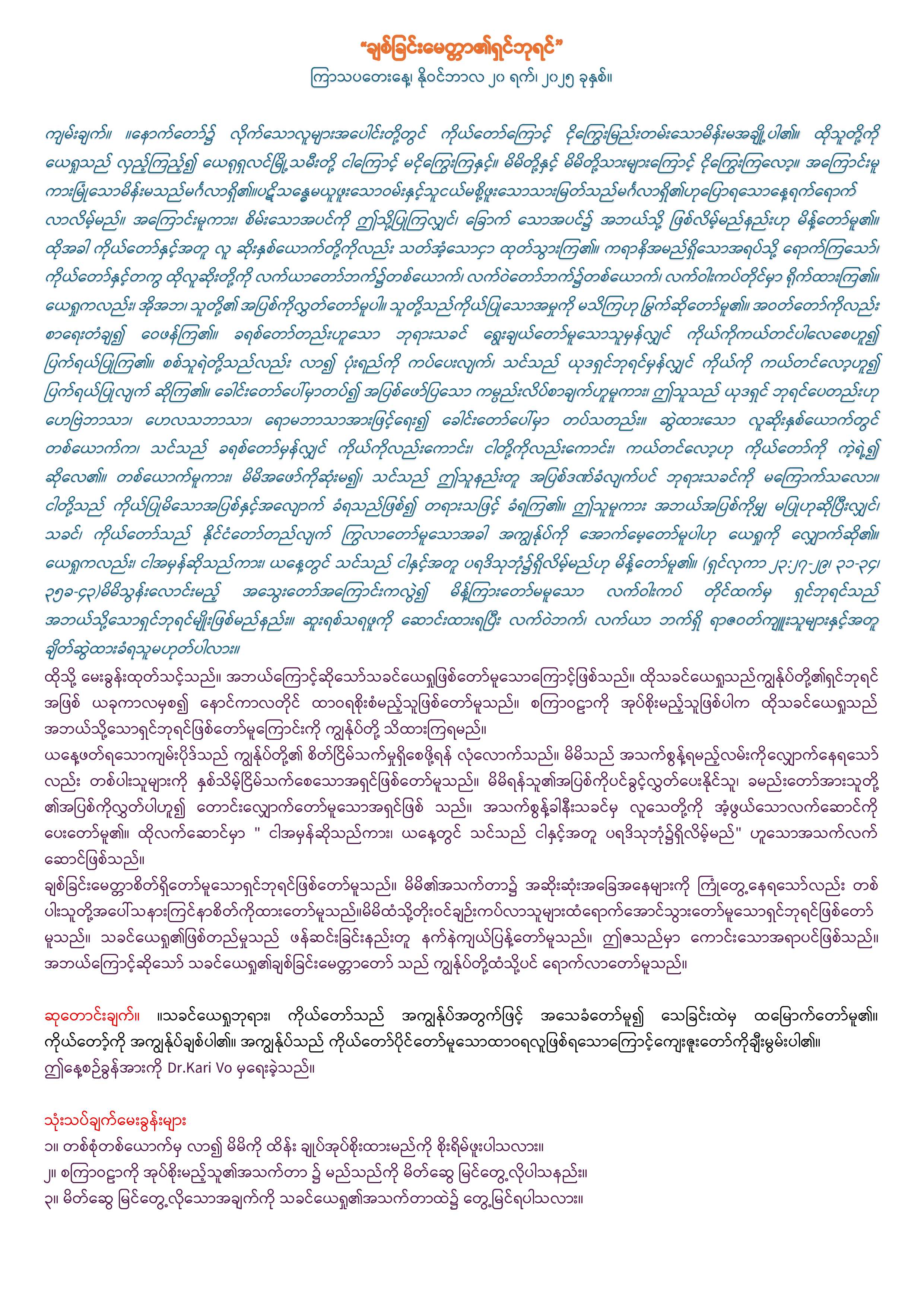 နုပျိုသက်တာအတုယူစရာကဏ္ဍ